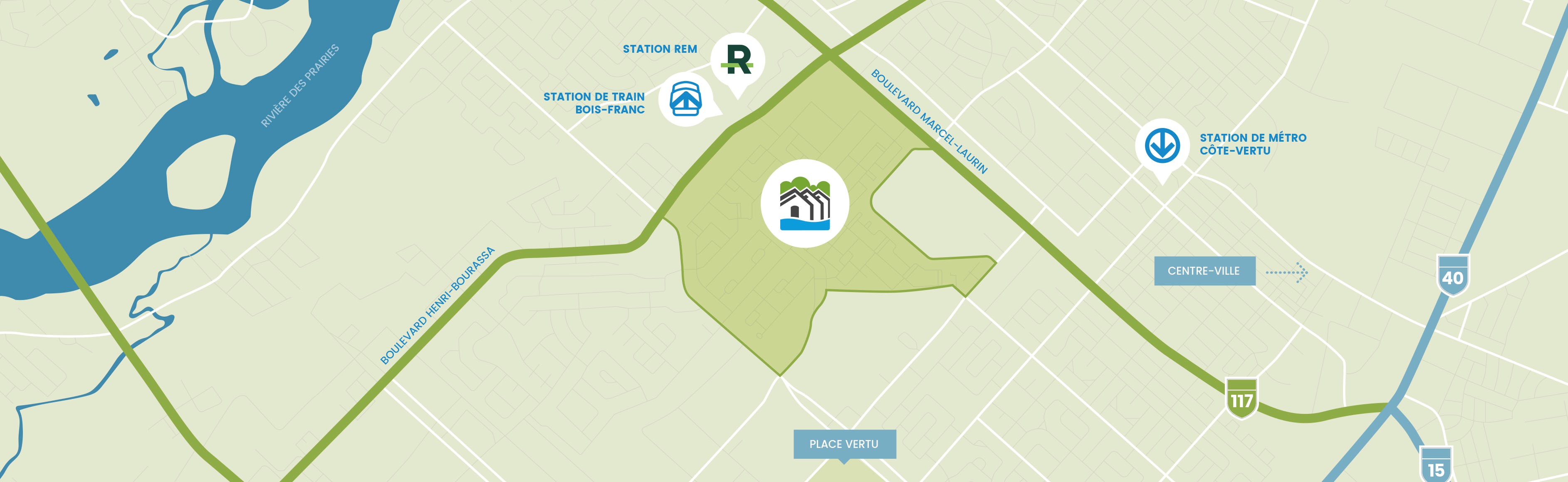 Living in Bois-Franc means to live in nature, but still close to the city, without the traffic jams on the bridge. Located in Montreal’s Saint-Laurent borough, the neighborhood is well-known for its central position in the metropolitan road network. Its placement allows, among other things, to enjoy privileged access to highways 13, 15 and 40.