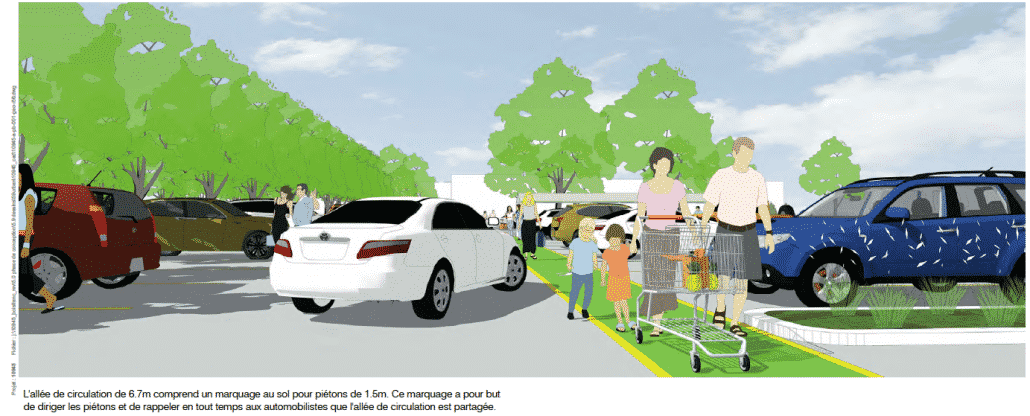 Le choix des matériaux pour le revêtement des aires de stationnement a été pensé pour réduire l’effet des îlots de chaleur. Des espaces de type «sentier» ainsi que des trottoirs exclusifs seront dédiés aux piétons